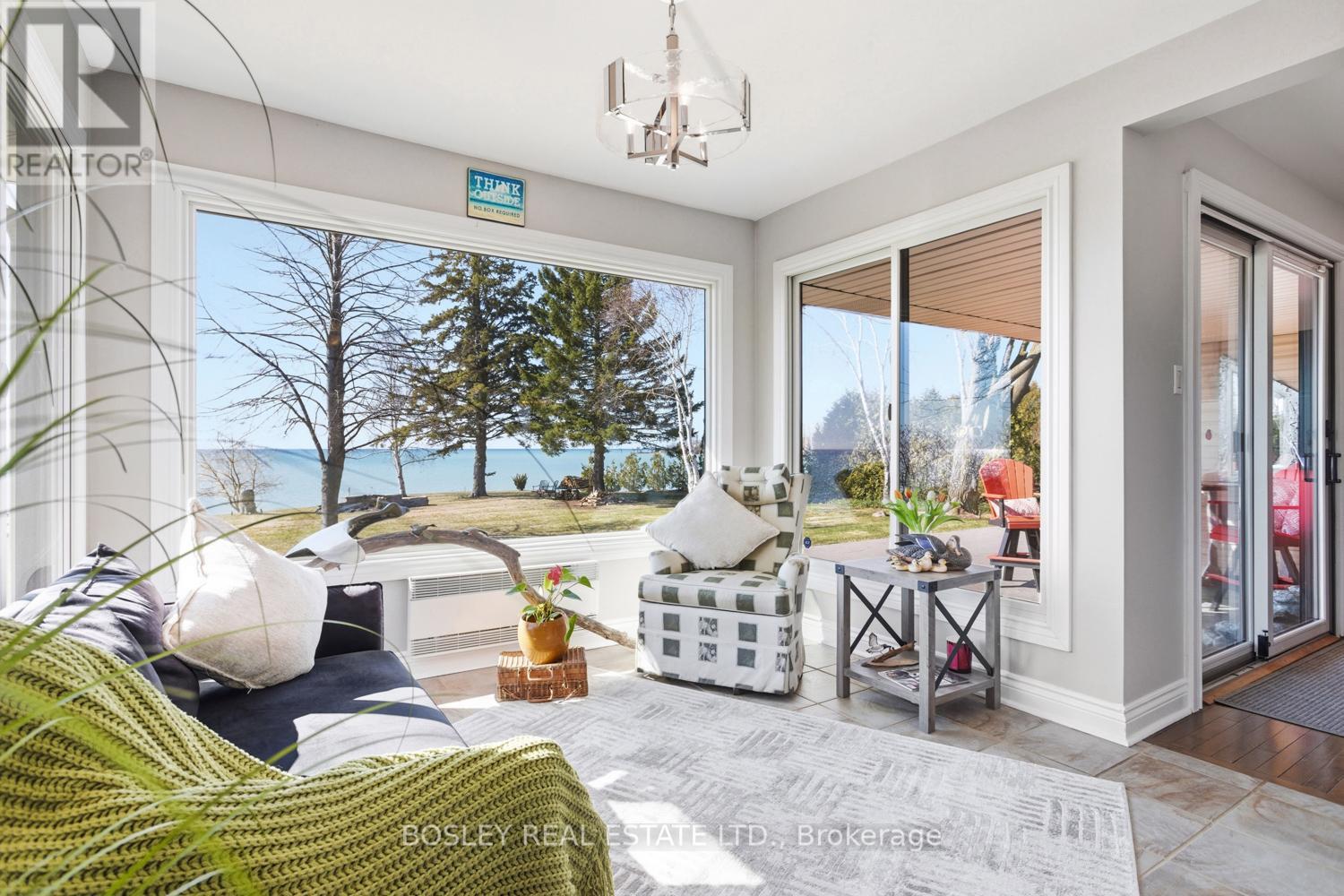 Direct private "Lake Ontario" waterfront, this incredible and unique waterfront property, a rare find along the Shoreline with direct beach access and a view that brings a smile to your face all year round. Bring the term "long walks on the beach" to life here, a special an uniquely private beach. Whether you are looking for a full time residence or 4 season cottage to enjoy at your please all year, this is a must see sensational property. Plenty of thoughtful details, a well designed interior main floor layout with space to take in the view from every window, watch the skyline all day, evening and into the night surrounded by privacy. A beautiful exterior space for entertaining, large stamped concrete patio overlooking the exterior lights illuminating the landscaped grounds, custom fire pit and decking along the shore, leading directly down to the lake with views through to Presqu'ile Provincial Park. A beautiful interior with tasteful updates, eat in kitchen with beautiful cabinetry and storage, overlooking the main floor den with oversized windows, large living room adjacent with plenty of space for you to personalize and orientate furniture to spend time entertaining or just enjoying the peace and tranquility. Expansive lower level with additional room for finished living space and guest accomodation, laundry etc.... The primary bedroom provides a second walk out to the Southern part of the property and a diverse landscaped yard with mature trees and clear views. A very special place to call your own, an asset cottage for those who like to travel or a full time residence, a multitude of options for those looking to really take in "LAKE LIFE" and appreciate the little details. Relax, swim, sunrise, stargazing and breathe in the lake breeze! (id:2469)